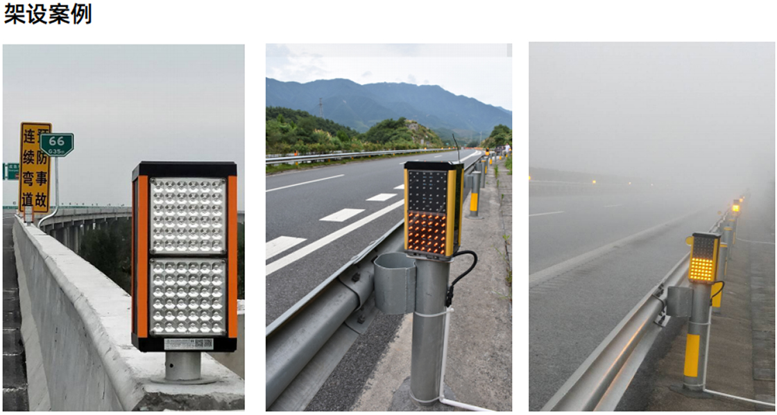 The induction system is based on the principle of infrared radiation technology, which can quickly capture and trigger warning lights for dynamic and static target vehicles in low visibility environments such as foggy, rainy, snowy, and nighttime; No need to lay cables, no need to damage road and pavement side structures, no need to add additional poles or horizontal bars, easy installation and construction; The connection method is simple and can be directly connected to the lighting warning system; The detection distance can reach 25m, with accurate detection and zero false alarms; Not affected by external environmental factors such as wind, light, temperature, and changes in dense fog, and can accurately identify and track target vehicles through smoke, dust, and fog, helping to achieve rear end collision warning for vehicles in foggy areas.